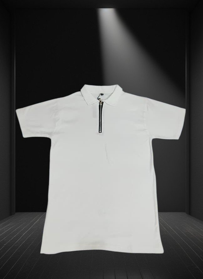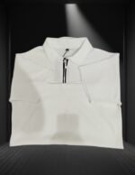 - স্টাইলিশ সাদা হাফ-স্লিভ পলো টি-শার্ট—মিনিমাল ডিজাইন ও ফ্রন্ট জিপার ডিটেইলের সাথে আরামদায়ক ফিট। দৈনন্দিন ও ক্যাজুয়াল ব্যবহারের জন্য পারফেক্ট চয়েস।